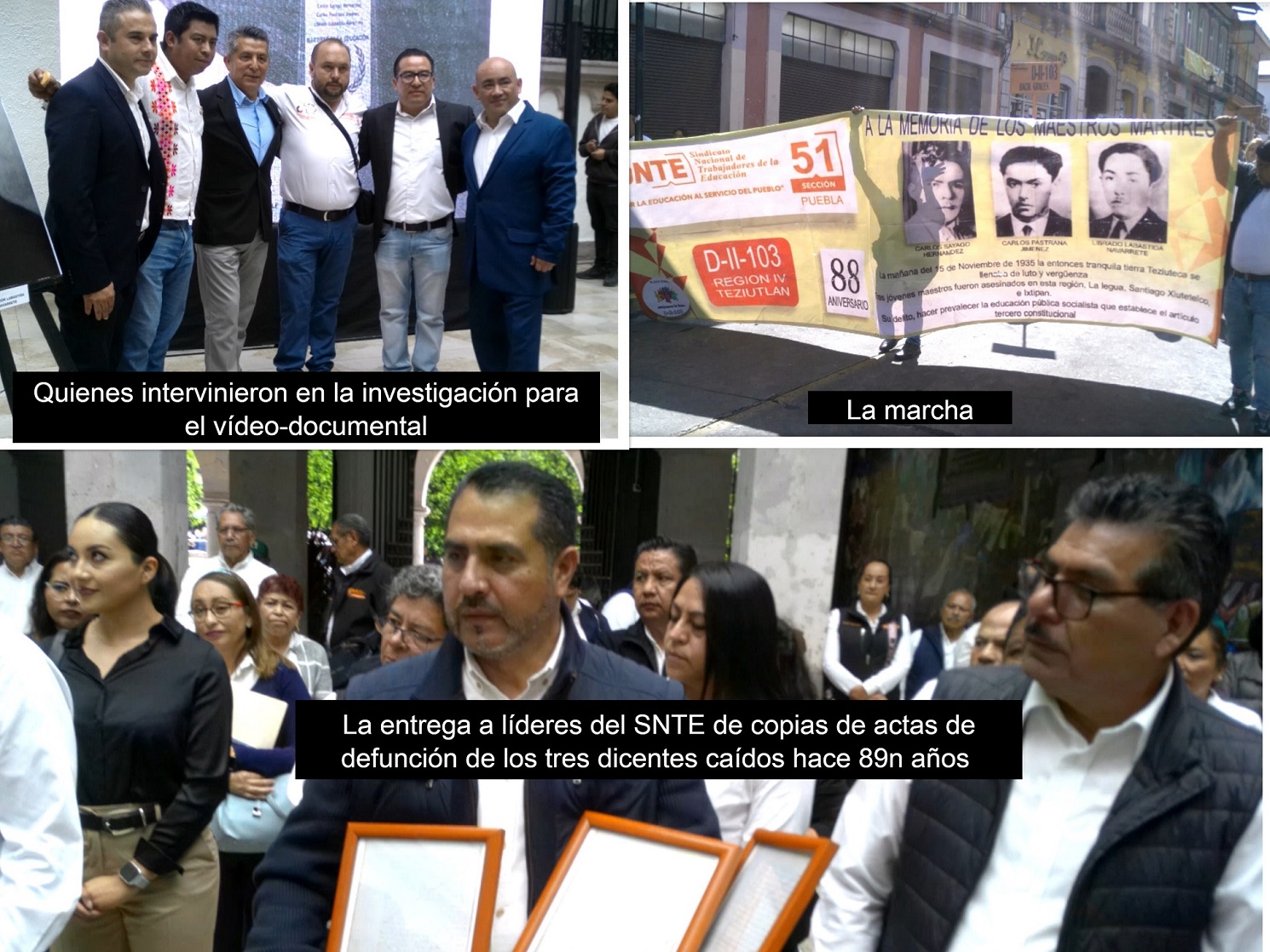 Mario Hernández como representante del SNTE en el país, pidió a las autoridades municipales información detallada para poder hacer las gestiones desde su sindicato que dirige Alfonso Zepeda, dada la importancia que reviste; mientras el líder de la sección 23 José Luís González, pidió actas certificadas de la defunción de los tres maestros asesinados a manos de los llamados cristeros, información vital para iniciar con las peticiones de que cada 15 de noviembre sea un día cívico, tal y como se hizo hace unos años ante el Congreso de Local de Puebla.