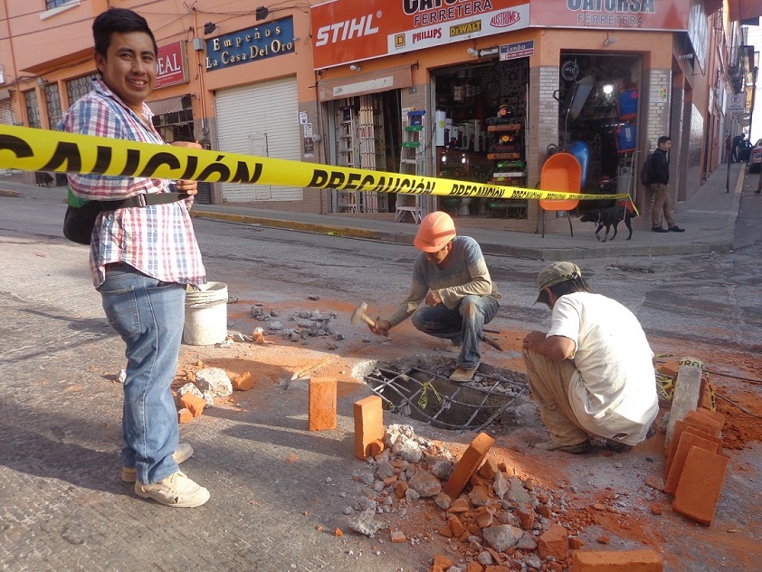El peligro ya tenía días, dado que se quedó vulnerable desde que introdujeron el drenaje del mercado subterráneo que es construido, y con el paso de unidades y la lluvia generaron un peligro mayor, y por fortuna ninguna persona se cayó en el lugar.