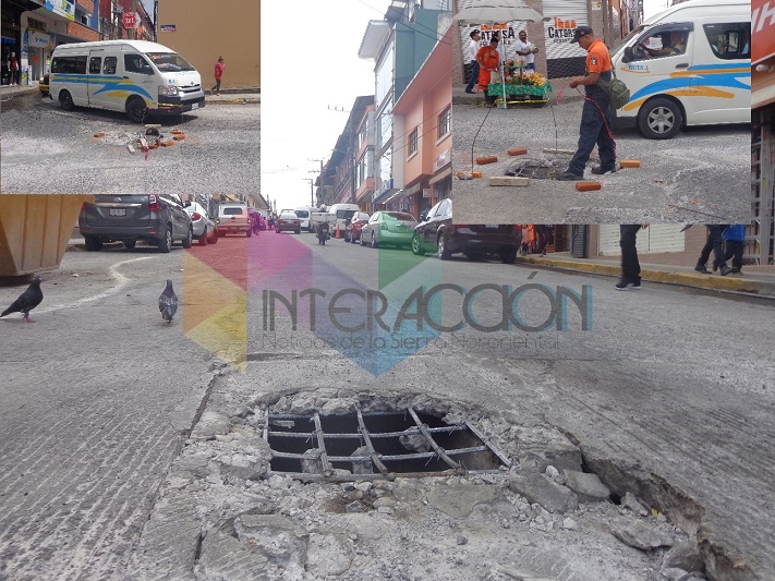 Teziutlán.- No obstante de que parece algo sin importancia como lo han evidenciado autoridades municipales con su pobre actuación, la tapa de una caja de registro que terminó por derruirse, la cual tenía varios días con fisuras, por los trabajos de introducción de tubería del nuevo mercado, el paso de unidades combinado con las lluvias, apenas este domingo por la tarde Protección Civil actúo al enviar elementos para colocar un lata con arena, dos pedazos de madera y unos ladrillos, con dos trozos de cinta, lo que a decir de transeúntes no es suficiente para brindar seguridad a los peatones y también automovilistas en la calle Lerdo esquina con avenida Hidalgo del centro.