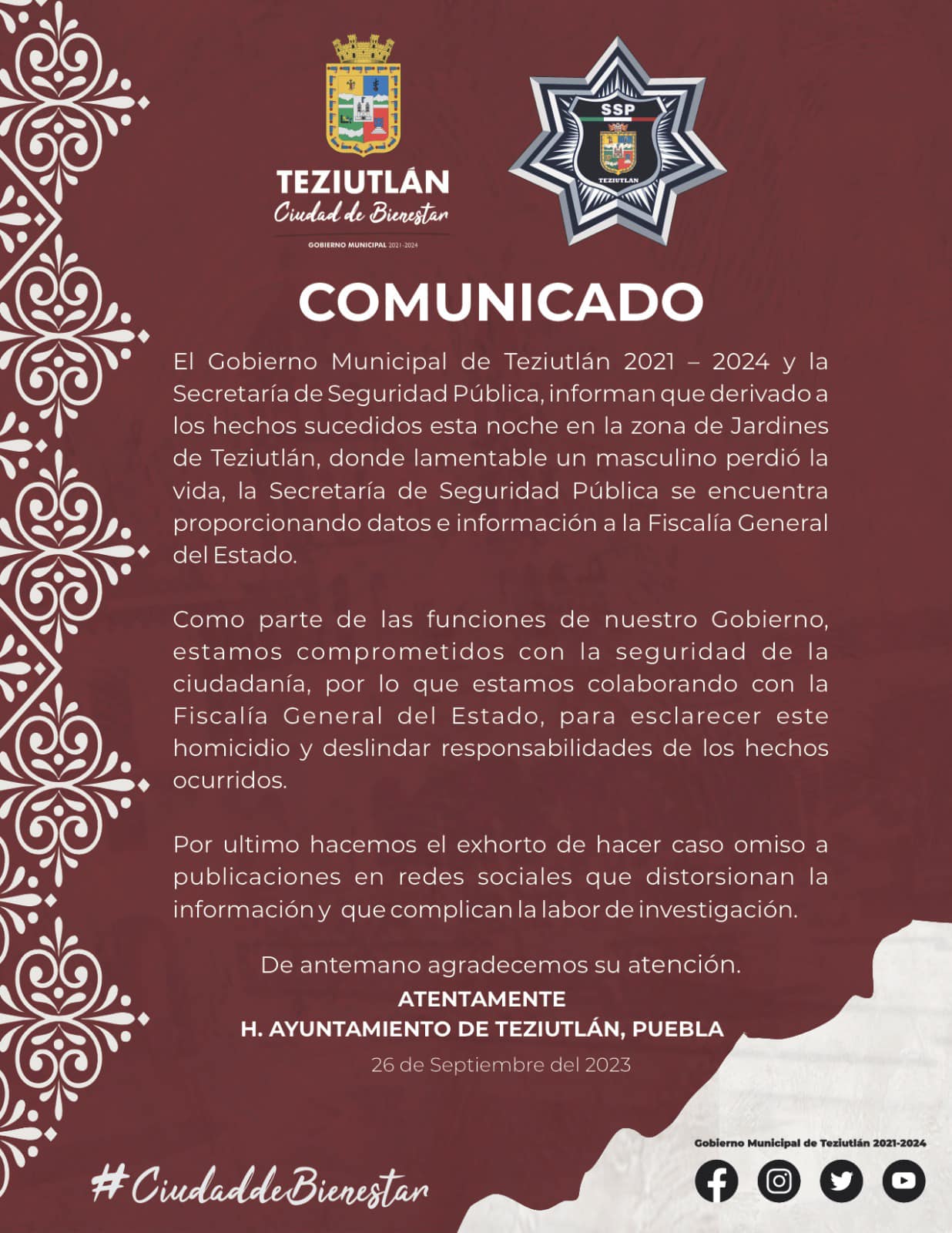 Ayuntamiento de Teziutlán en lugar de resultados palpables emite comunicados tras homicidios