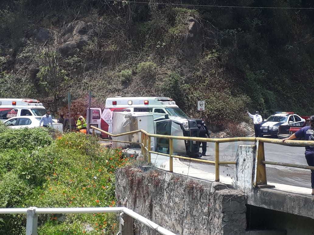 Teziutlán. – Una camioneta de la marca Nissan color gris y caja seca blanca de la empresa Coca-Cola terminó volcada del lado derecho, y como resultado el chófer y copiloto de la unidad resultaron lesionados quienes fueron requirieron de atención hospitalaria, el hecho se registró exactamente a las 13:30 horas de hoy lunes.