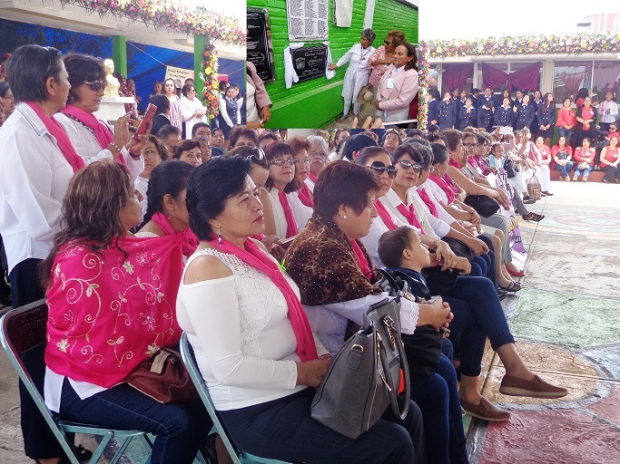 Al finalizar placas de tres generaciones de estudiantes fueron develadas y posteriormente se desarrolló el desfile de ex alumnas.