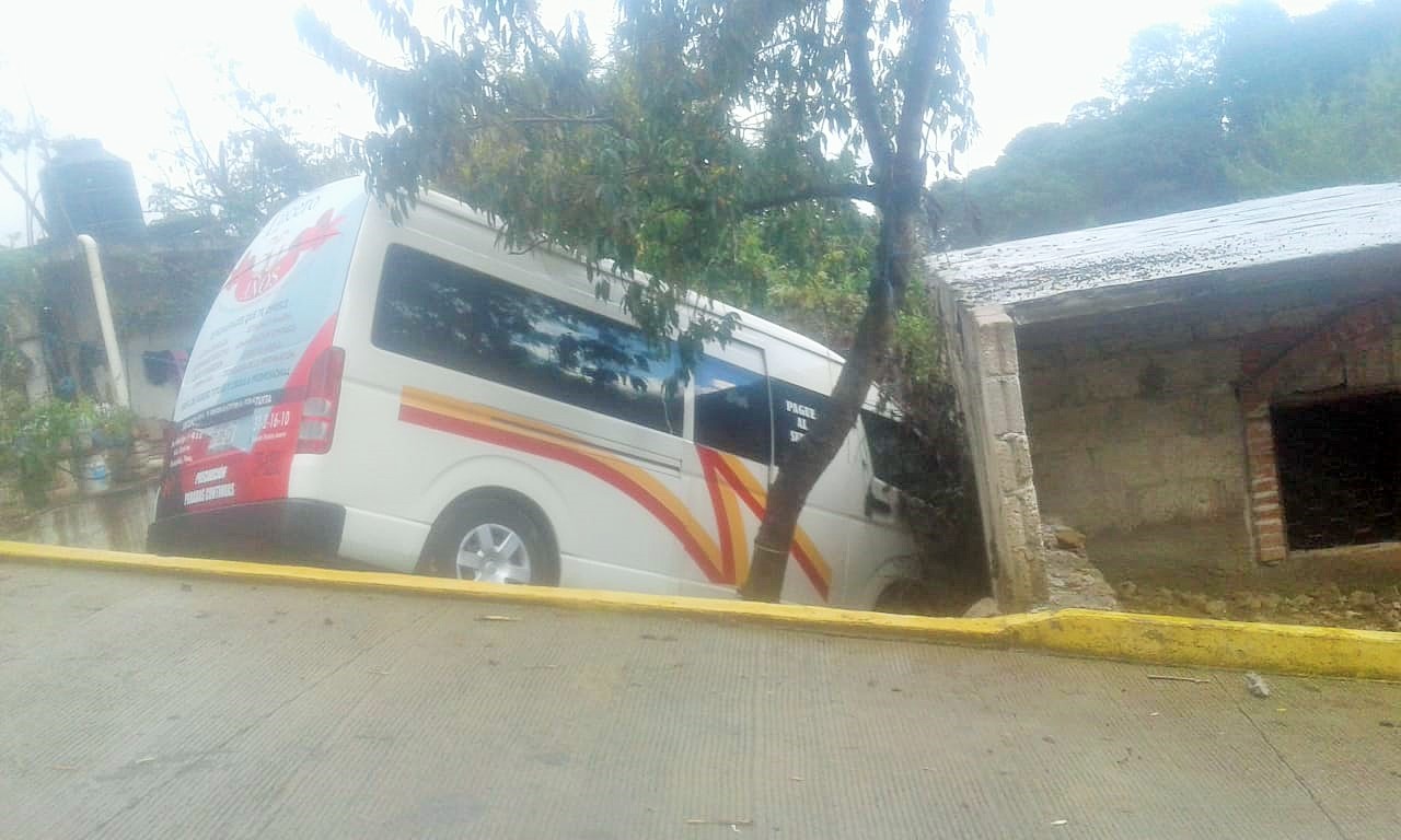 La unidad se metió a un pequeño predio con una leve pendiente en el libramiento de Cuaxoxpa, en medio de dos viviendas y golpeo a la casa deshabitada porque esta en proceso final de edificación.