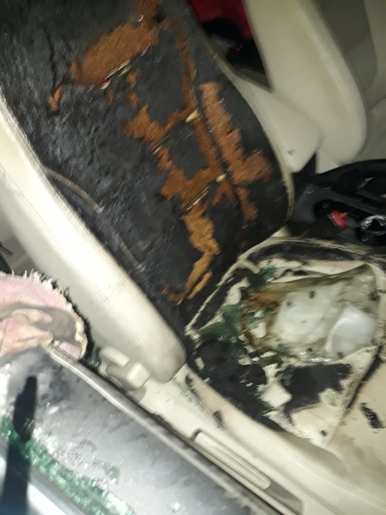 Fue en la carretera Teziutlán-Nautla, cerca del complejo universitario de salud de la BUAP, donde se produjo el acontecimiento, minutos después de la 1 de la mañana, al sujetos o sujetos desconocidos quebrar una ventana del lado del copiloto, para luego arrojar una estopa con gasolina al carro.