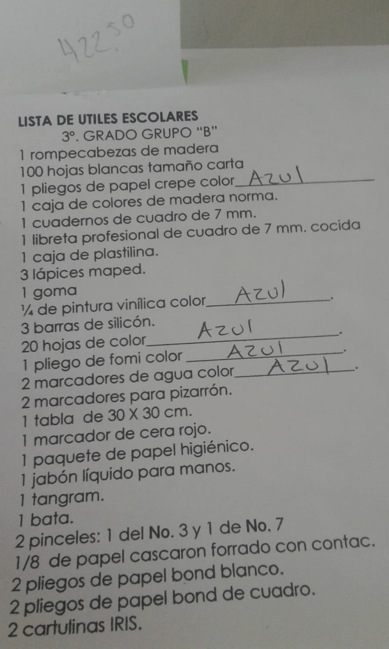 De acuerdo con una estimación aproximada en base al listado de los artículos solicitados que además de útiles y materiales didácticos, batas para los niños, así como plumones para pizarrones asciende a 810 pesos el costo para el tercer grado de este nivel educativo, mientras que para el segundo año sobrepasa los mil 200 pesos.