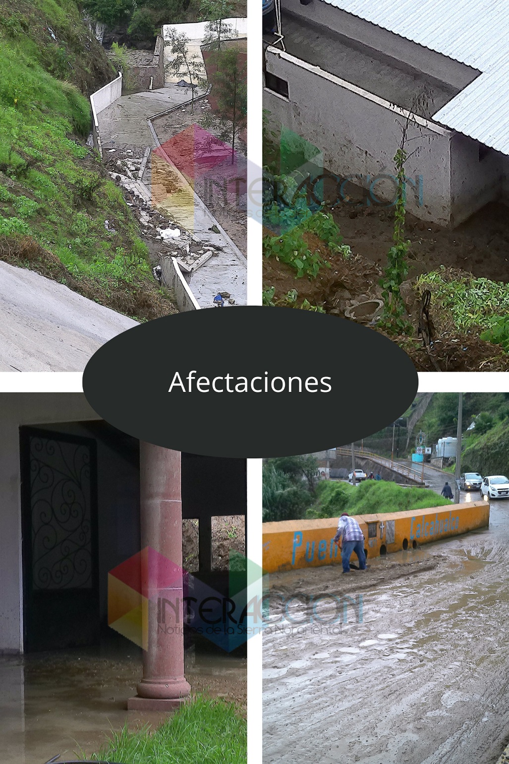 Teziutlán. – La torrencial lluvia de este sábado con duración mayor a la hora fue más que suficiente para causar afectaciones en el Parque Recreativo Francia, también conocido como Parque de Los Dinosaurios, el cual aún no es puesto en servicio, ya que por un deslave en la ladera generó la caída de una parte del muro perimetral del mismo, aunado a que uno de los inmuebles situado en la misma zona se dañó al entrar lodo, producto de un deslizamiento en el talud que circunda con el andador de la Quinta Francia, además en el mismo barrio por la salida repentina de agua  en un predio de la avenida Luís Audirac a la calle primero de mayo el puente se inundó igualmente de lodo y la precipitación.