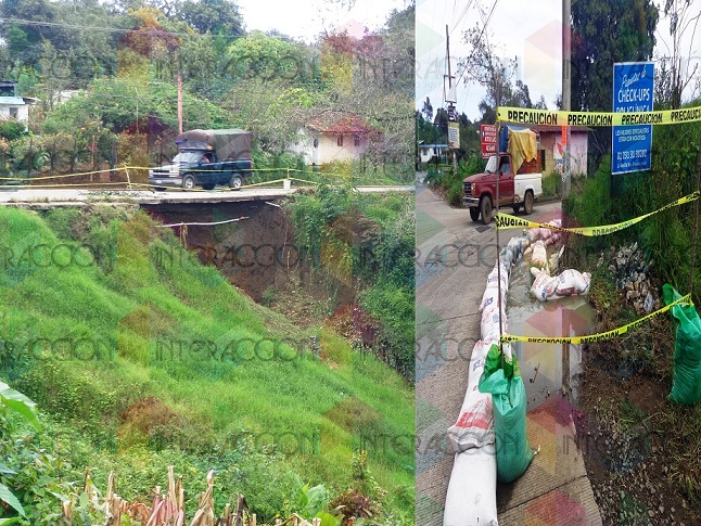 Teziutlán.– Debido a las lluvias de miércoles y jueves y el corrimiento del drenaje sanitario de las unidades habitacionales ubicadas metros abajo de Las Tres Cruces, provocaron un deslave que socavó parte de la vía principal que conecta con la Junta Auxiliar de Atoluca.