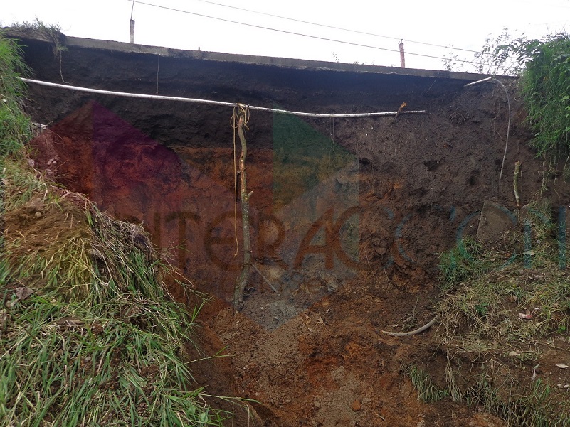 El socavón dejó blanda la carretera, pues esta hueco parte del pavimento, aunque este está completo, pero si se llevó parte de la cuneta y levemente deterioro el muro de contención, ya que hasta ese punto llegaba el mismo.