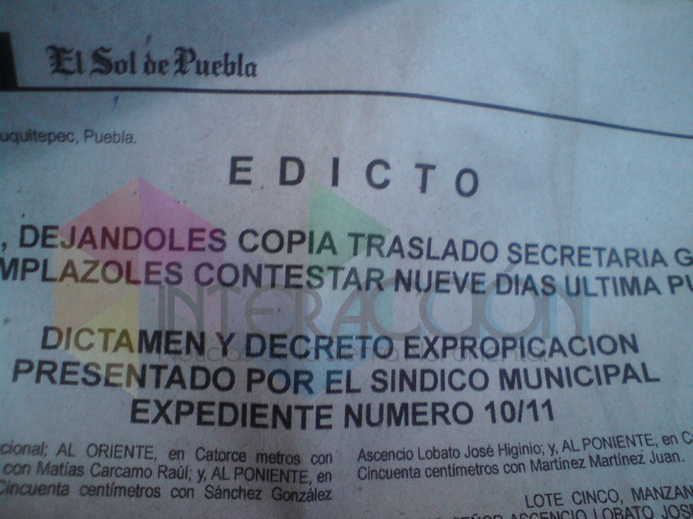 Regresando al tema específico del conflicto suscitado, Macario Vázquez, quien fue el presidente municipal del periodo 2008-2011, y en el año 2010 promovió un juicio de nulidad de las escrituras que en esas fechas ya estaban en manos de los extrabajadores, pues incluso exhibieron las boletas prediales de sus lotes, pero como algo le salió mal al Ayuntamiento llevaron a cabo un decreto de expropiación del terreno total, con el fin de donarlo para la construcción de la primera etapa del ITSTL, bajo el expediente 10/11, lo que fue publicado en el Sol de Puebla en la recta final del año en mención, incluso tengo en resguardo un ejemplar donde salió la inserción del edicto.