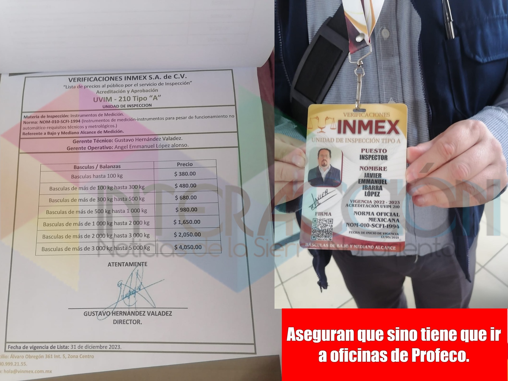 Teziutlán. – Dos inspectores de la empresa Verificaciones INMEX S.A de C.V, pidieron a dirigentes de los diferentes mercados de este municipio que hablaran con los locatarios para poder precisamente verificar las basculas y constatar que estas den el peso exacto, y alardean que al expedirles un certificado se evitan una posible multa ante la Procuraduría del Consumidor (Profeco), y dicen estar facultados por la Secretaria de Economía (SE), pero para el proceso que efectúan cobran como mínimo 380 pesos por cada instrumento de peso de hasta 100 kilos, no obstante no todos los mercados aceptaron.