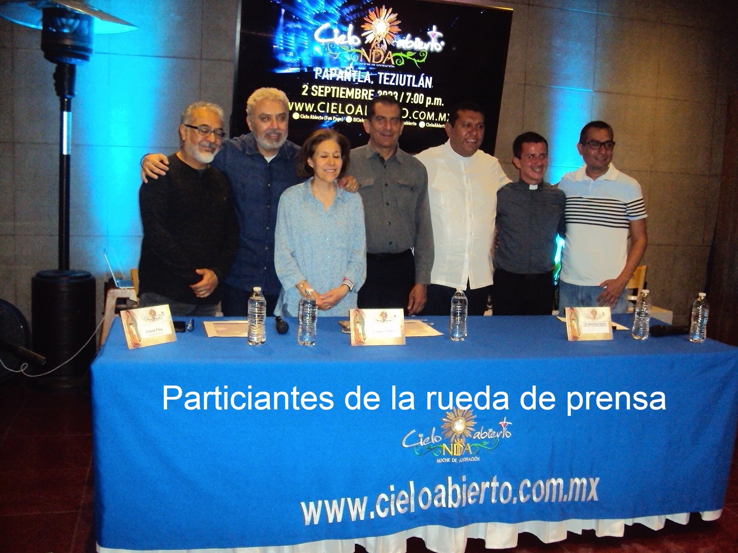 Víctor Grajales Lagunes, rector de la iglesia Catedral, Miguel Navarro, presbítero de la iglesia de Santiago Apóstol en el municipio de Hueytamalco y organizador del concierto y Gustavo Landa Cárcamo, rector del Santuario de la Virgen del Carmen, así como Pedro González, director de Cielo Abierto, Cristal Domínguez, directora de Relaciones Públicas y David Filio, cantante católico mexicano, tuvieron participación en la rueda de prensa.