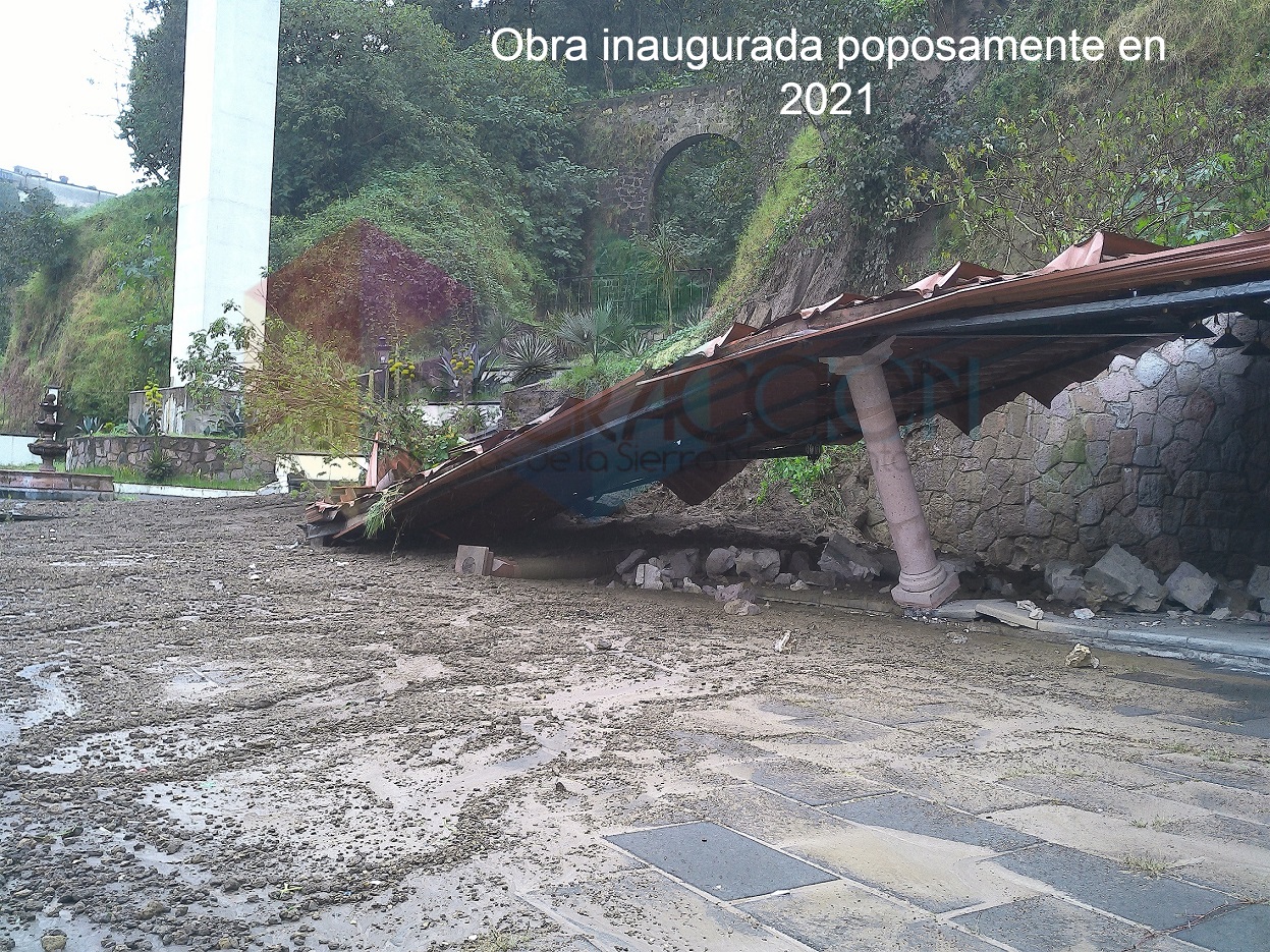 Teziutlán. -El gobierno municipal de Carlos Peredo de las dos anteriores administraciones está dejando huella, pero por el colapso de sus obras, primero fue casi la entrada del Arco Oriente en Linda Vista, donde un talud junto a parte de una construcción particular en obra negra se fue abajo pese a contar con un muro a base de malla y concreto edificado por el Ayuntamiento del pasado periodo, y ahora la lluvia que trajo el frente frío 10 fue más que suficiente para generar un deslave en otra ladera ubicada en avenida Bicentenario, y como consecuencia parte del muro de contención se afectó y derruyó una galera que era utilizada esporádicamente como cafetería, lugar que forma parte del memorial en honor de quienes perdieron la vida por el Covid-19 entre 2020 y 2021.