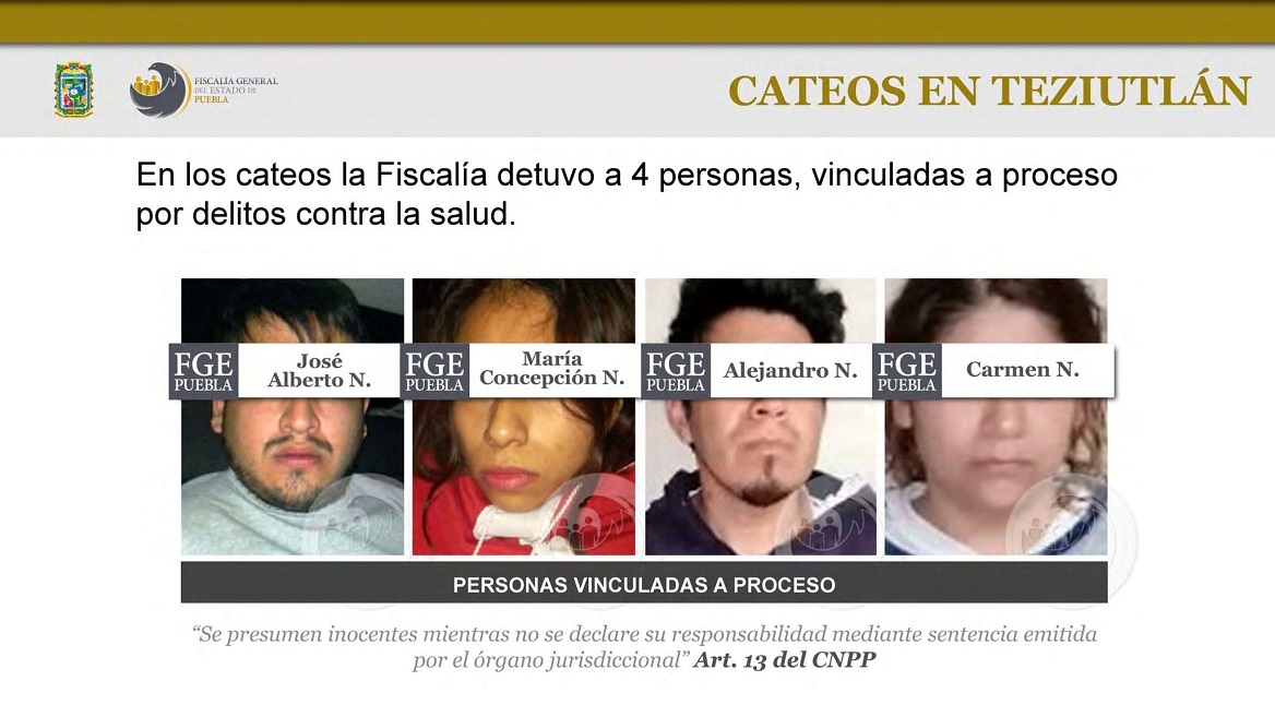 Al investigar narcomenudeo en Teziutlán, la #FiscalíaPuebla realizó cateos en 7 inmuebles. Se aseguraron más de 30 vehículos y diversas dosis de droga, además se detuvieron 4 personas que ya están vinculadas a proceso.