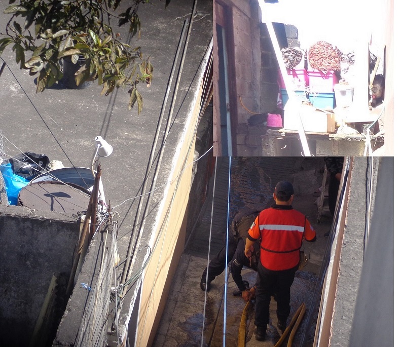 El hecho se suscitó alrededor de las 12:40 horas de este lunes cuando una mujer quien se encontraba al interior sólo con su bebe y notó que se incendiaba algo en su patio y se percató de que era una fuga de gas, por ello solicitó apoyo de vecinos para que la auxiliaran.