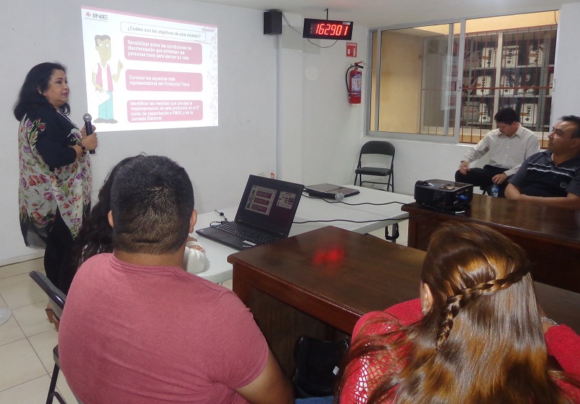 En el acto además de quienes fungieron como supervisores y capacitadores electorales, participaron en el diálogo a través del intercambio de información y de puntos de vista, consejeros electorales, un representante de partido político y de un medio de comunicación, en dos grupos se detectó nula discriminación hacia este sector de la población en los comicios más recientes, sin embargo en varios casos posiblemente no se han presentado porque los funcionarios de casilla y personal del INE tiene detectadas a las personas, o acuden como aparecen en su fotografía de credencial de elector a emitir su sufragio y así se han evitado los perjuicios o simplemente varios miembros de la población trans no acude a cumplir con su obligación ante el temor de que pueda ser segregado o discriminado, y de ahí surge la importancia por poner en marcha el protocolo para garantizar la participación de los ciudadanos de forma igualitaria.
