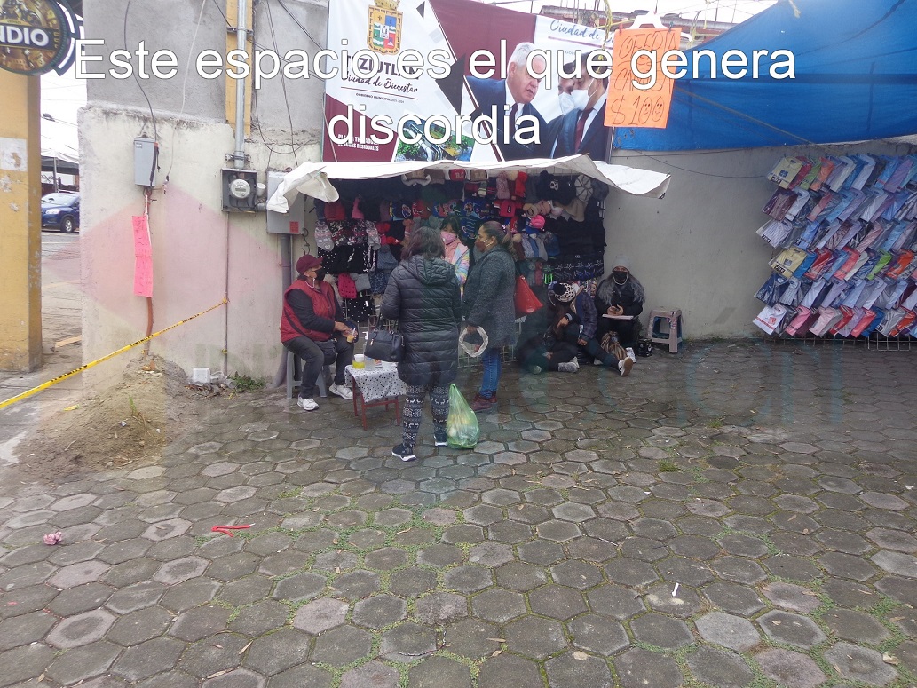 Pero después optó por esperar a que regresaran a la normalidad, es por lo que este día (viernes) en su caso decidió volverse a instalar, pero su sorpresa fue que la lideresa arriba citada y otro representante de grupo de comerciantes, acompañados del director de vía pública, Genaro Hernández Córdova, y la persona a la que supuestamente le vendieron el espacio, junto con otros vendedores, trataron de desalojarla.