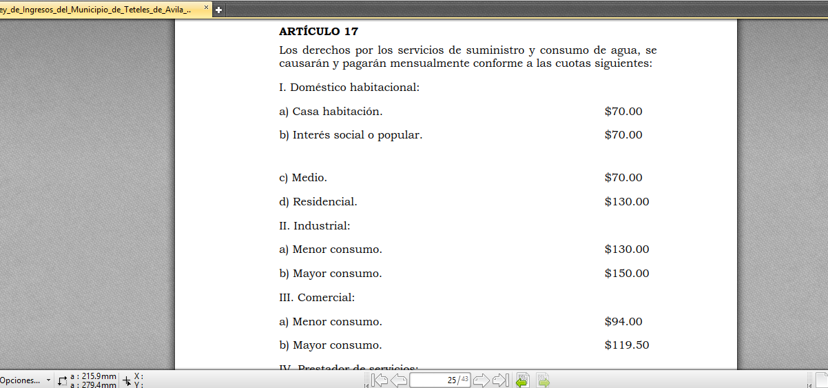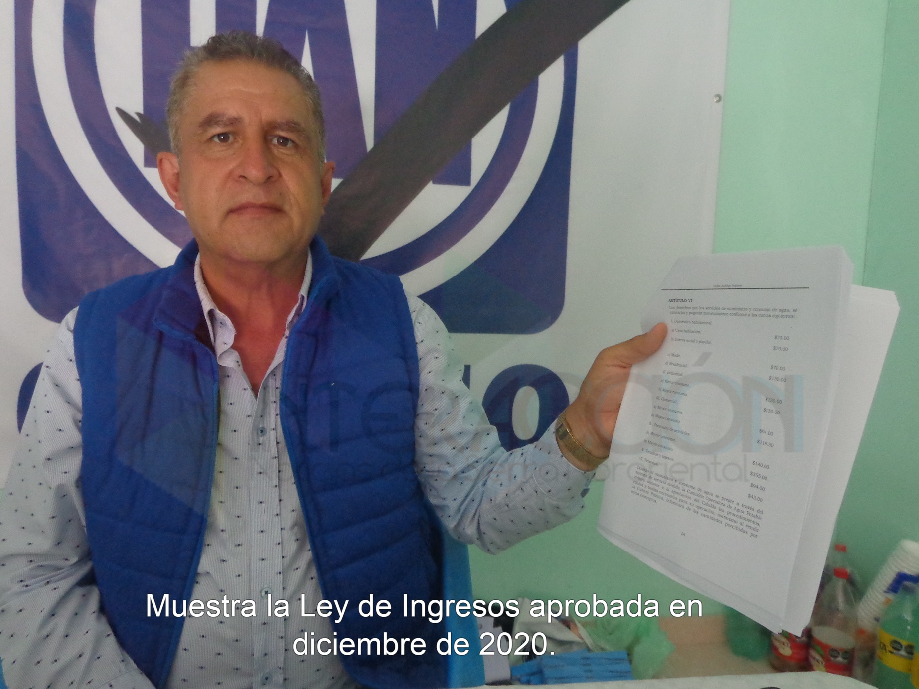 En la actual administración aumentaron el costo del servicio, lo que se evidencia en la Ley de Ingresos vigente, pues de acuerdo con el articulo 17 establecen las cuotas, que son 70 pesos por consumo en cada hogar, en lo que casa habitación, que son las tarifas mínimas. No obstante, el edil con licencia y candidato, Mario Castro, argumenta que la modificación fue de la pasada administración, por ello el entrevistado mostró el documento que esta publicado de manera digital en el Periódico Oficial del Estado, y es del ejercicio fiscal presente (2021), con lo que demuestra que el actual Cabildo que encabezó el abanderado del Compromiso por Puebla y PT, fue el encargado de cambiar el precio del servicio, pese a que no cuentan con el mismo de forma regular, y en medio de la pandemia.