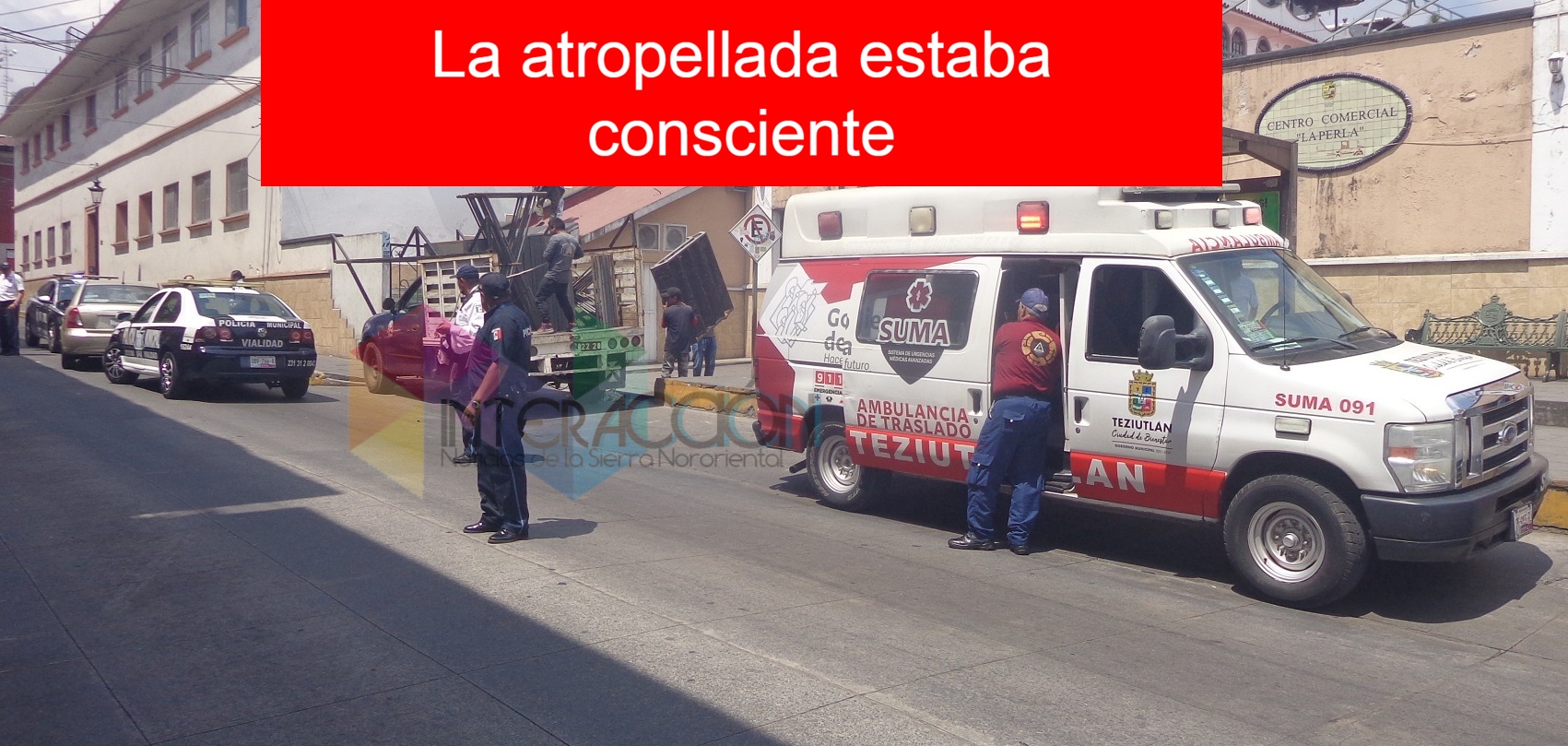 Mujer fue arrollada en centro de Teziutlán por vehículo y resultó con golpes contusos