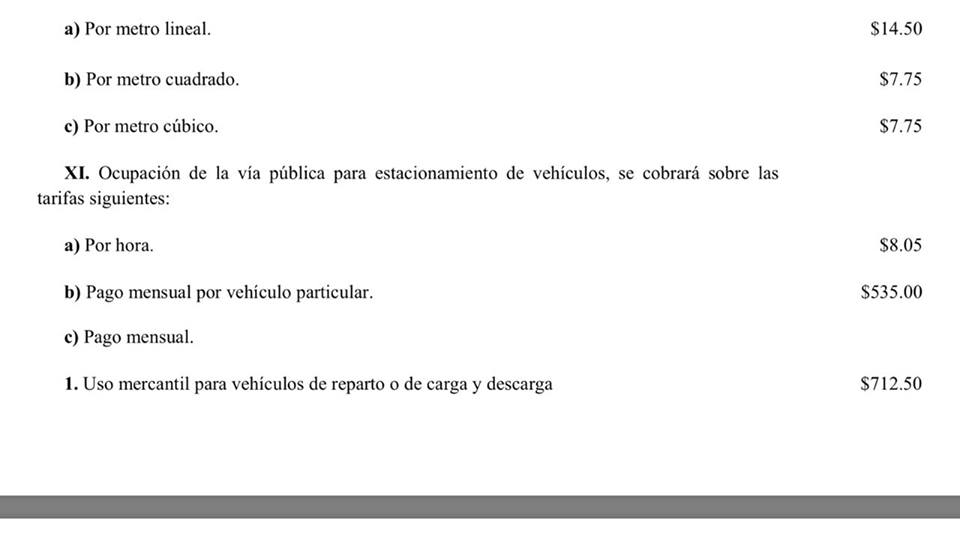 A lo anterior se le suma que de 7 paso a 10 pesos la tarifa por hora para estacionamiento, y en la Ley Municipal de Ingresos publicada el 18 de diciembre en el Diario Oficial del Estado fue aprobado que sólo aumentaría un peso, pero no fue así, el edil, Carlos Peredo en su propia defensa dijo ante los medios de comunicación que existe ignorancia, debido a que el Cabildo está facultado para hacer las modificaciones, no obstante demostró su falta de compromiso y su burla hacia los usuarios y ciudadanos en general, con el único afán de fortalecer los ingresos en las arcas municipales.