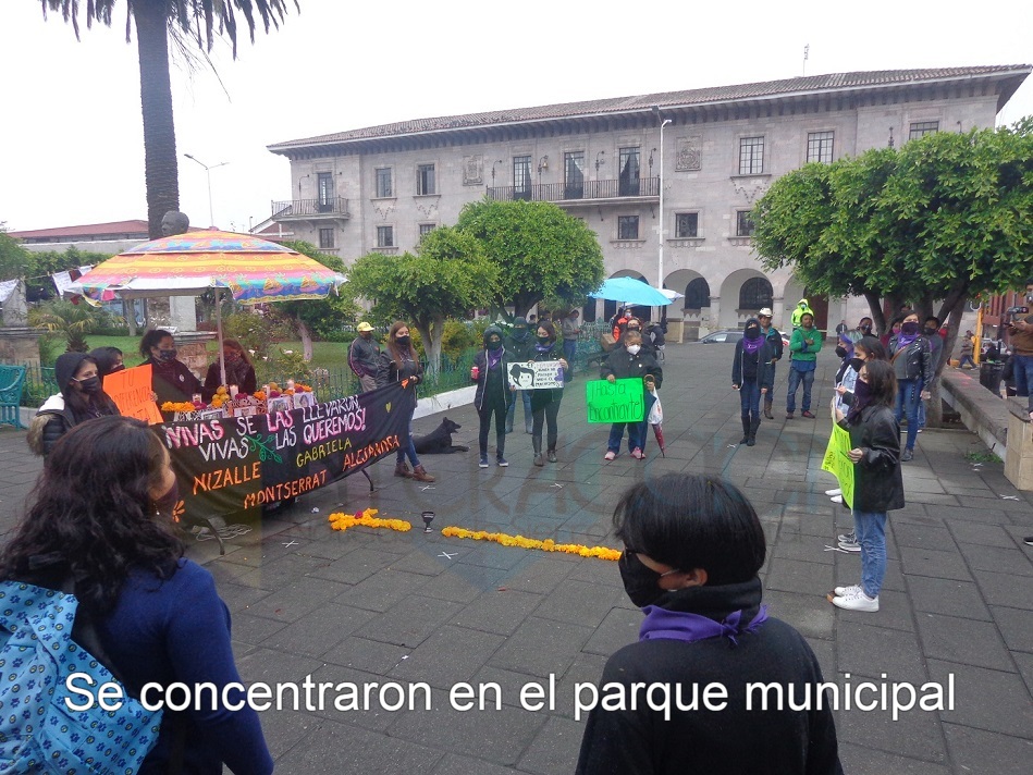 Posteriormente en el parque municipal, las miembros de las diferentes agrupaciones se concentraron, justo a colocaron la ofrenda de las últimas cuatro víctimas de feminicidios en esta zona.