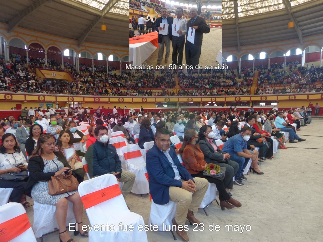 Teziutlán. – Después de dos años de no llevarse a cabo, fue retomado el evento de entrega de estímulos económicos de la promoción 2021 y 2022 a maestros de la región 03 de Teziutlán de parte del Sindicato Nacional de Trabajadores de la Educación (SNTE) sección 23, y fueron a más a poco más de 600, por 20, 25, 30, 35, 40, 45, entre ellos a tres por 50 años de servicio, acto que fue desarrollado en la plaza de toros de este municipio, en el que además rifaron arriba de 150 obsequios diversos como electrodomésticos, entre otros, gracias a la aportación de presidentes municipales de la región y 22 equipos de cómputo portátil de parte del Sindicato.