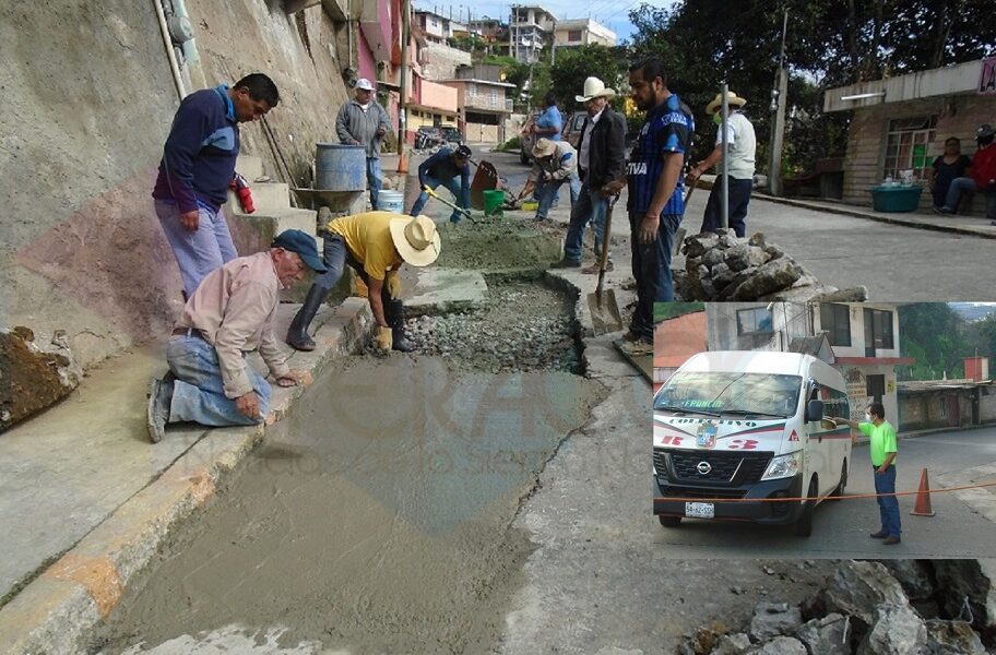 Vecinos del barrio de Francia de Teziutlán bachean en faenas con aportaciones particulares Teziutlán. – Pese a la solicitud que realizaron al Ayuntamiento teziuteco, y al no obtener respuesta para obtener materiales para nuevo concreto hidráulico, vecinos de Francia se unieron en la labor de bachear diferentes puntos del barrio con aportaciones para reunir el material necesario y con faenas,