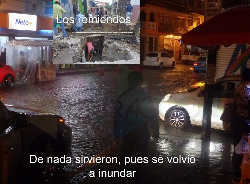 Calle 16 de septiembre de Teziutlán se sigue inundando a pesar de remiendos en alcantarillas Por Fausto Hernández Teziutlán. – Breves horas de lluvia de este sábado 16 de octubre fue suficiente para volver a inundar un tramo de la calle 16 de septiembre intersección con Filomeno, justo a lado del mercado del mismo nombre, a pesar de que en