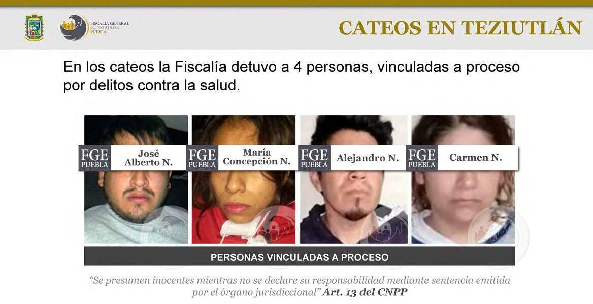 FGE Detuvo a 4 en cateo de 7 inmuebles por narcomenudeo Al investigar narcomenudeo en Teziutlán, la #FiscalíaPuebla realizó cateos en 7 inmuebles. Se aseguraron más de 30 vehículos y diversas dosis de droga, además se detuvieron 4 personas que ya están vinculadas a proceso.