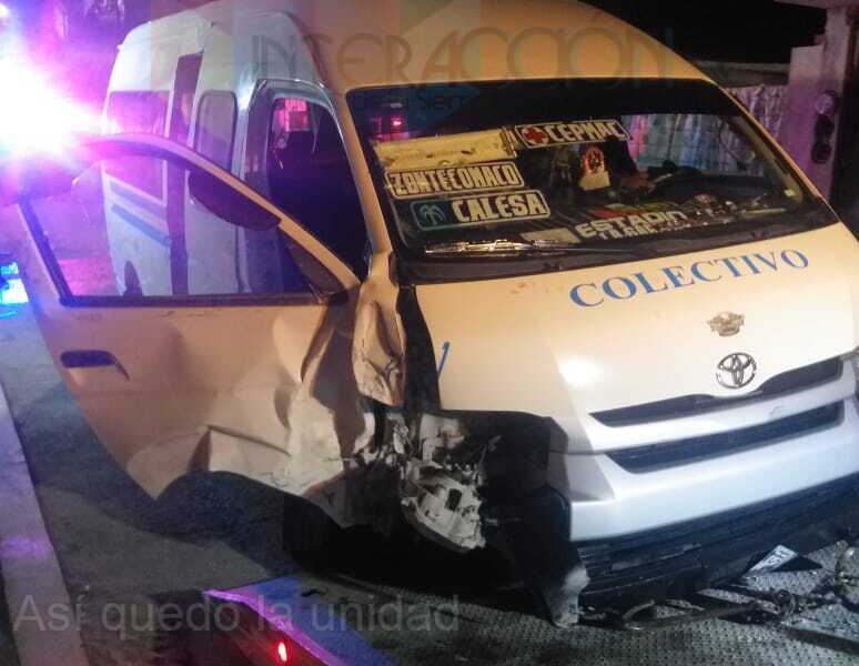 Chófer ebrio de la ruta 1 en persecución terminó volcando la camioneta y él lesionado Teziutlán. – En lugar de guardar la unidad, chófer de colectiva de la ruta 1 se fue de jarra y terminó volcada la camioneta en el Zontecomaco, generando daños materiales tanto en el vehículo, como en en una tienda, esto tras una persecución, pues trataba
