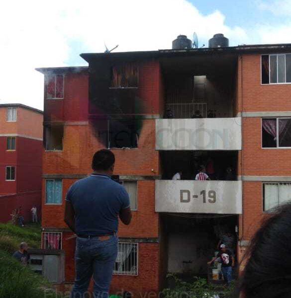 Familia se queda sin nada, tras incendiarse su departamento en la unidad habitacional del barrio del Fresnillo Teziutlán. – A cenizas y escombros quedaron reducidas las pertenencias de una familia que habitaba en uno de los departamentos del tercer piso del edificio D-19 de la unidad habitacional del barrio del Fresnillo por un incendio, tras un corto circuito, hecho en
