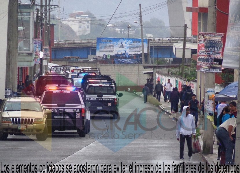 Por familiares de detenidos que se manifestaron, la fuerza pública se concentró en calle La Mesilla para evitar que ingresaran a Casa de Justicia. Por Fausto Hernández Teziutlán.- Elementos de Seguridad Pública de diferentes municipios de la región, de la Policía Estatal Preventiva (PEP) y hasta algunos efectivos de la Policía Federal custodian la Casa de Justicia, luego de que