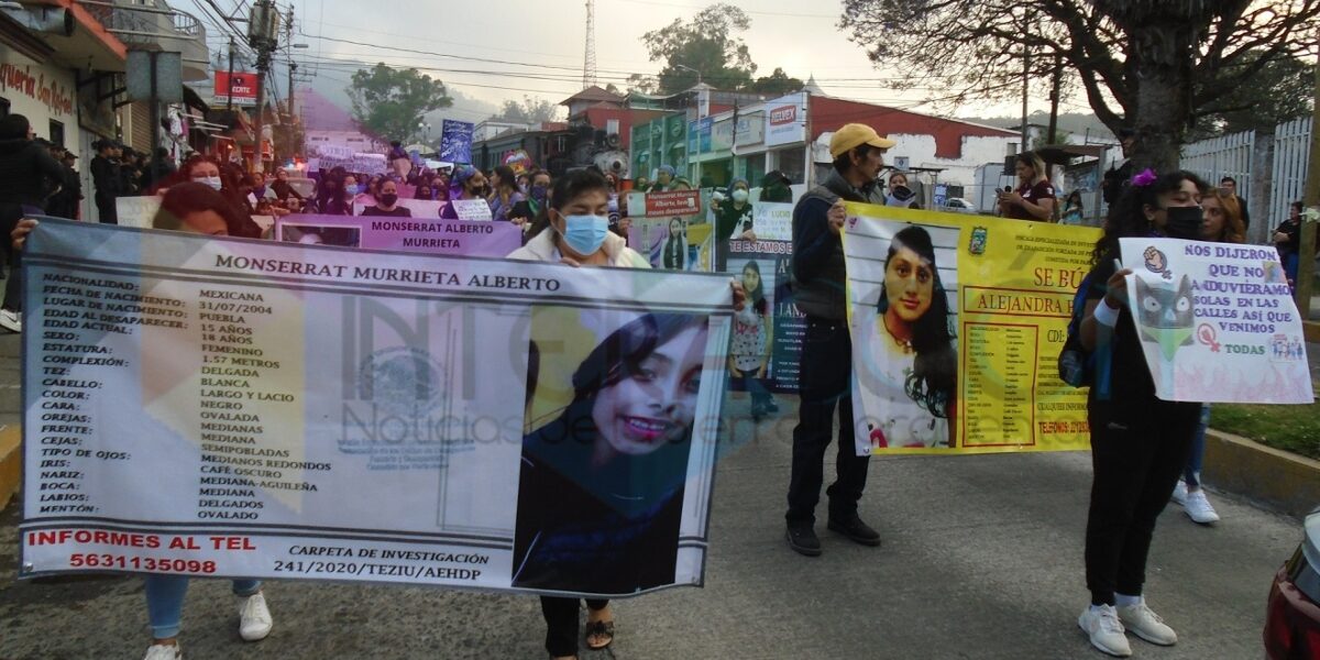 Búsqueda de desaparecidas y alto a la violencia, fue motivo de la marcha feminista en Teziutlán Teziutlán. – Frente feminista Teziuteco, Hijas de Lilith Yaonahuac, Aquelarre en las Neblinas de Teziutlán y Aquelarre del Cerro que colorea, son los cuatro colectivos que congregaron a cientos de féminas que participaron en marcha y manifestación pacífica, evento que culminó en el parque