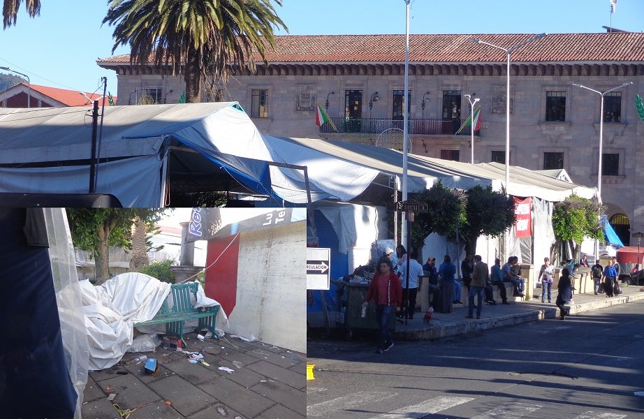 Sin fecha definida para que sea desocupado el Parque Municipal de Teziutlán Por Fausto Hernández Teziutlán. – A casi cumplirse ocho meses de que los locatarios de lo que fue el mercado Techumbre fueron reubicados al Parque Municipal siguen utilizando este espacio por la eterna obra del centro comercial Los Portales, pues los argumentos es que no aceptaban los nuevos