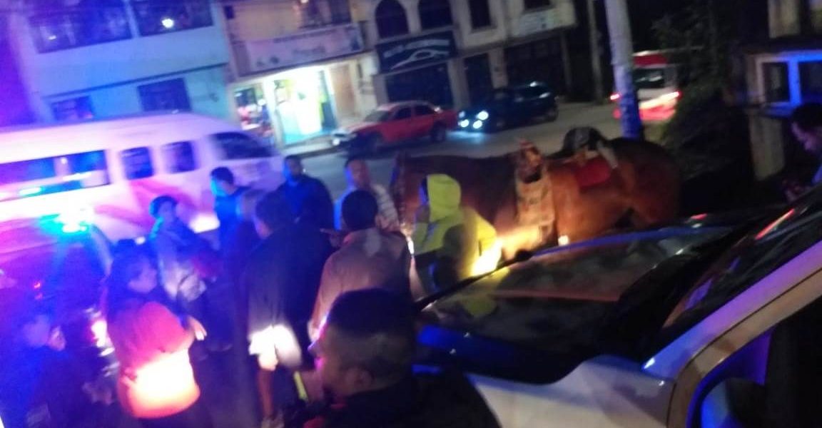 Patrulla “atropelló” a caballo de detenido quien resultó ser concesionario de la Ruta 2 Teziutlán.– Luego de provocar desorden al ir bajo los influjos del alcohol como lo atestiguaron transeúntes, dos caballerangos fueron detenidos por la Policía Municipal con sus respectivos equinos, pero uno de los animales fue lastimado con una patrulla, cuando los policías cerraron el paso para efectuar