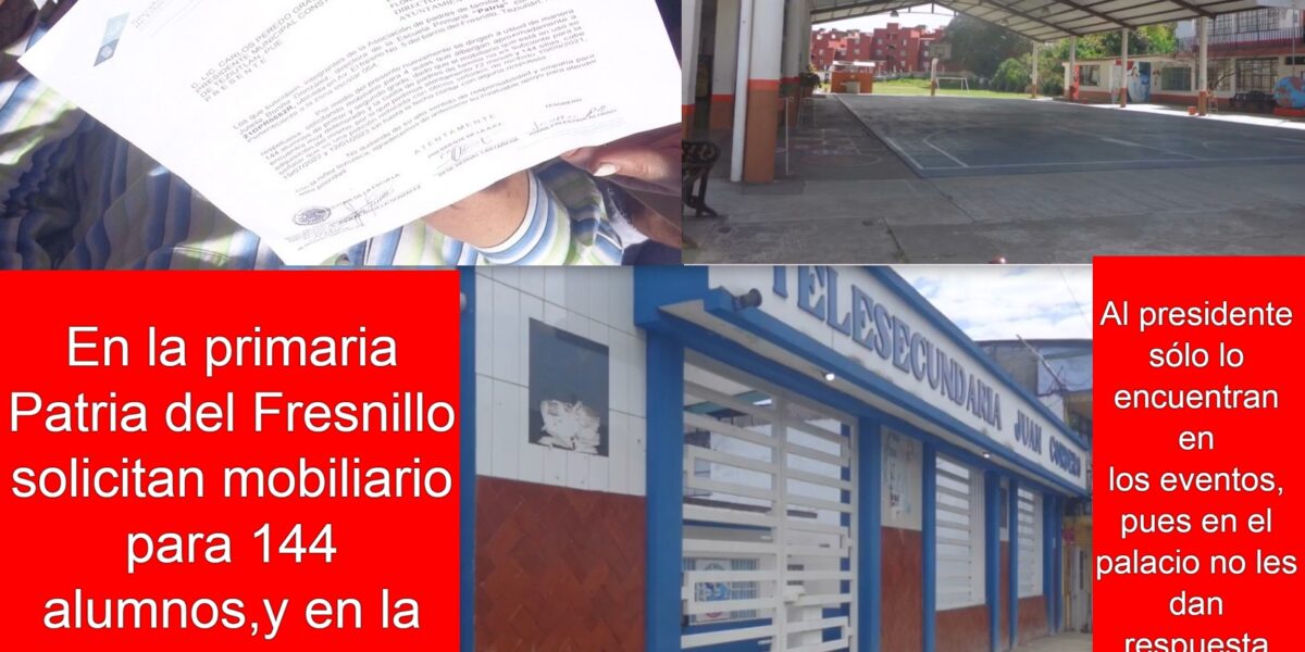 Peredo asegura que el CAPCEE tiene años en no intervenir para rehabilitar escuelas del municipio Por: Fausto Hernández Teziutlán. – Directivos y padres de familia de la escuela primaria Patria del barrio del Fresnillo y de la Telesecundaria Juan Cordero del barrio de Francia, solicitaron el apoyo del Ayuntamiento que preside Carlos Peredo, con la finalidad de obtener mobiliario para