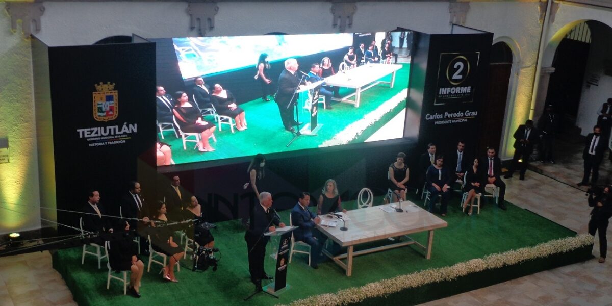 En su segundo informe Peredo asegura que la mayor inversión fue en Seguridad Pública con 30 millones de pesos Anuncia obra del Arco Oriente y un paquete de obras con un costo de 50 millones de pesos Por Fausto Hernández Teziutlán. – El presidente municipal Carlos Peredo Grau, en el marco del segundo informe de labores al frente del Ayuntamiento
