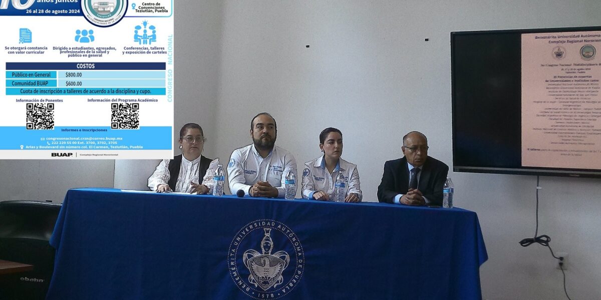 Por los 10 años del complejo Universitario de la Salud BUAP prepara en Teziutlán el tercer Congreso Nacional Interdisciplinario de la Salud Por: Fausto Hernández Teziutlán. – En rueda de prensa directivos del Complejo Universitario Regional de la Salud de la Benemérita Universidad Autónoma de Puebla (BUAP) quienes son organizadores del evento dieron a conocer los avances y la confirmación