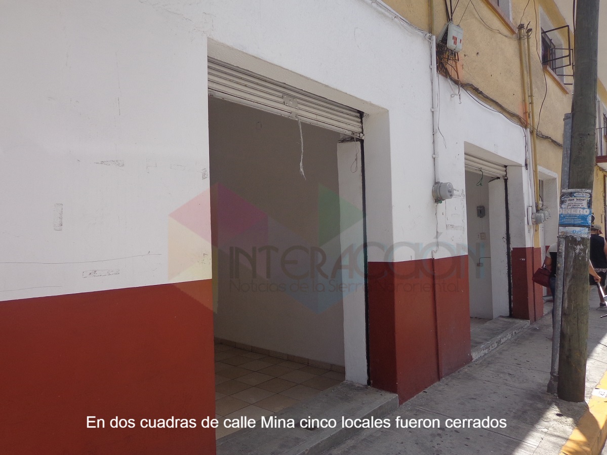 Específicamente en calle Mina entre Cuauhtémoc a Hidalgo, cinco locales fueron cerrados y en todos estos existe un letrero en cartulina de que se renta. Incluye un local que funcionó como antro, el cual está a disposición para alguna maquila.